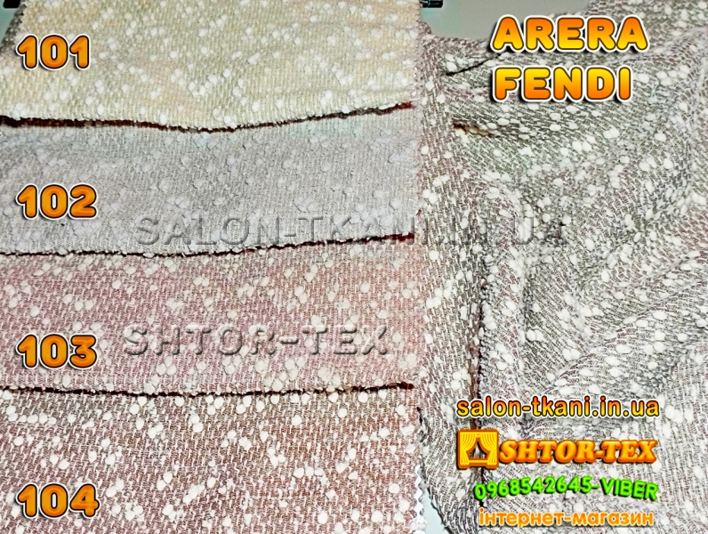 У нас Ви можете купити шторну тканину ARERA FENDI 101,102,103,104 гуртом та в роздріб від 1м за самою кращею ціною. У нас представлені ARERA мирових брендів, в докладних каталогах та з якістними фото.Ми пропонуємо відмінну якість за ціною виробника.Працюємо по всій Україні: Київ, Дніпро, Запоріжжя, Харьків, Одеса, Миколаїв, Вінниця, Житомир, Івано-Франківськ, Кропівницький, Полтава, Суми, Тернопіль, Чернівці, Чернігів, Херсон, Львів, Рівне, Ужгород...
