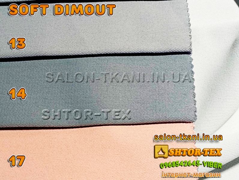 Тканина дімаут ARTPLAY SOFT DIMOUT 13,14,17 – портьєрний двошаровий матеріал, основою якого є волокна поліефіру. Його світлонепроникність становить 70-80%. Назва "дімаут" означає "часткове затемнення". Штори dimout здатні блокувати світло від джерела штучного освітлення майже рівня чутливості зору. Прямі сонячні промені через такі портьєри хоч трохи, але проникають у кімнату, при цьому світло від них стає м'яким, розсіяним, а атмосфера в приміщенні – більш прохолодною та комфортною.