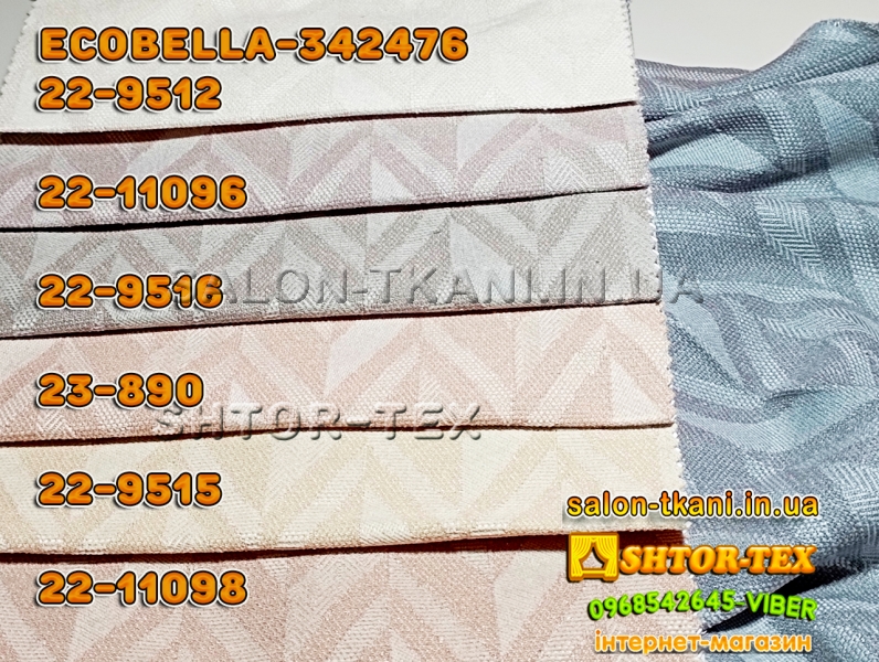Шторна тканина ECOBELLA 342476 22-9512,22-11096,22-9616,23-890,22-9515,22-11098 Має прекрасні споживчі якості. Елегантна, незалежна та динамічна, з яскравим та багатогранним дизайном. Популярна та затребувана на ринку інтер'єрної моди стане яскравим акцентом будь-якого інтер'єру та комфортною.