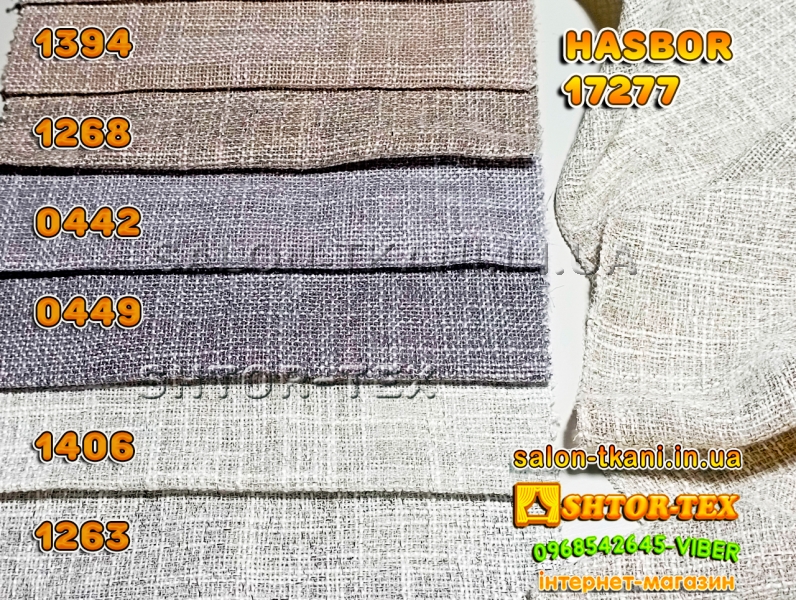 У нас Ви можете купити шторну тканину HASBOR 17277 1394,1268,0442,0449,1406,1263 гуртом та в роздріб від 1м за самою кращею ціною. У нас представлені HASBOR тюль мирових брендів, в докладних каталогах та з якістними фото.Ми пропонуємо відмінну якість за ціною виробника.Працюємо по всій Україні: Київ, Дніпро, Запоріжжя, Харьків, Одеса, Миколаїв, Вінниця, Житомир, Івано-Франківськ, Кропівницький, Полтава, Суми, Тернопіль, Чернівці, Чернігів, Херсон, Львів, Рівне, Ужгород...