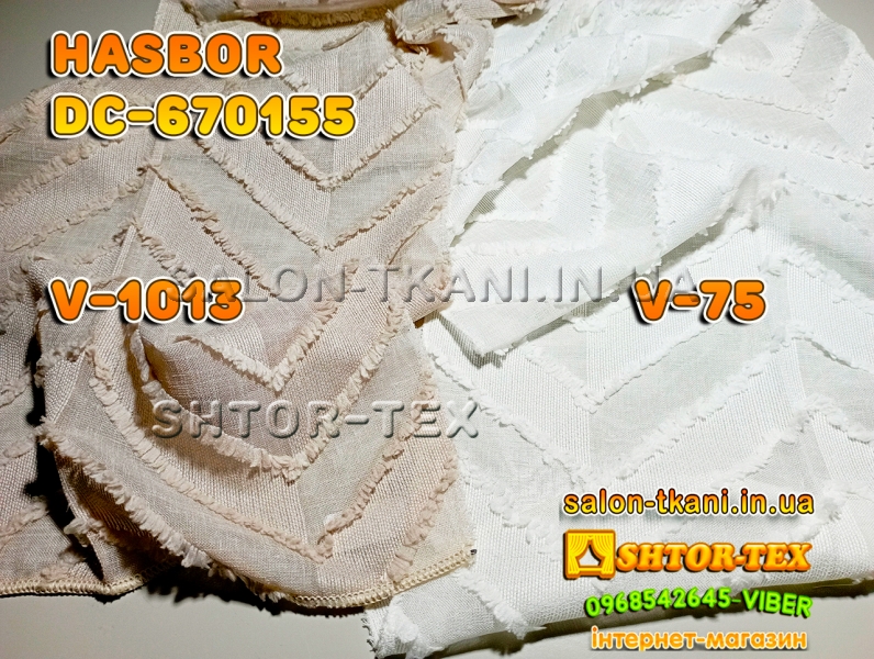 У нас Ви можете купити шторну тканину HASBOR DC-670155 V-1013,V-75 гуртом та в роздріб від 1м за самою кращею ціною. У нас представлені HASBOR тюль мирових брендів, в докладних каталогах та з якістними фото.Ми пропонуємо відмінну якість за ціною виробника.Працюємо по всій Україні: Київ, Дніпро, Запоріжжя, Харьків, Одеса, Миколаїв, Вінниця, Житомир, Івано-Франківськ, Кропівницький, Полтава, Суми, Тернопіль, Чернівці, Чернігів, Херсон, Львів, Рівне, Ужгород...