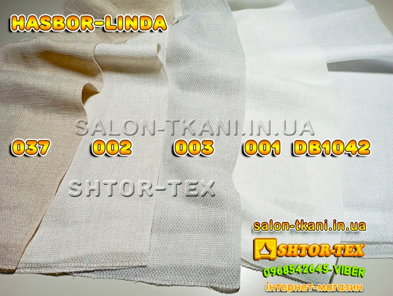 У нас Ви можете купити шторну тканину HASBOR LINDA 037,002,003,001,DB1042 гуртом та в роздріб від 1м за самою кращею ціною. У нас представлені HASBOR тюль мирових брендів, в докладних каталогах та з якістними фото.Ми пропонуємо відмінну якість за ціною виробника.Працюємо по всій Україні: Київ, Дніпро, Запоріжжя, Харьків, Одеса, Миколаїв, Вінниця, Житомир, Івано-Франківськ, Кропівницький, Полтава, Суми, Тернопіль, Чернівці, Чернігів, Херсон, Львів, Рівне, Ужгород...