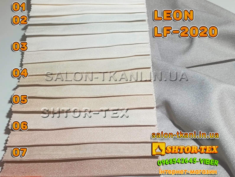 У нас Ви можете купити шторну тканину LEON LF 2020 01,02,03,04,05,06,07 гуртом та в роздріб від 1м за самою кращею ціною. У нас представлені LEON мирових брендів, в докладних каталогах та з якістними фото.Ми пропонуємо відмінну якість за ціною виробника.Працюємо по всій Україні: Київ, Дніпро, Запоріжжя, Харьків, Одеса, Миколаїв, Вінниця, Житомир, Івано-Франківськ, Кропівницький, Полтава, Суми, Тернопіль, Чернівці, Чернігів, Херсон, Львів, Рівне, Ужгород...