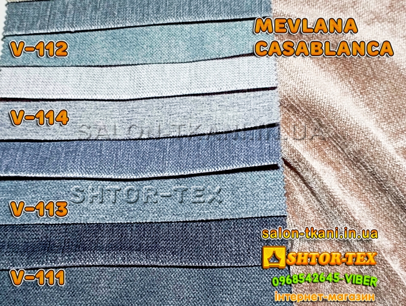 У нас Ви можете купити шторну тканину MEVLANA CASABLANCA V-111,V-112,V-113,V-114 гуртом та в роздріб від 1м за самою кращею ціною. У нас представлені MEVLANA мирових брендів, в докладних каталогах та з якістними фото.Ми пропонуємо відмінну якість за ціною виробника.Працюємо по всій Україні: Київ, Дніпро, Запоріжжя, Харьків, Одеса, Миколаїв, Вінниця, Житомир, Івано-Франківськ, Кропівницький, Полтава, Суми, Тернопіль, Чернівці, Чернігів, Херсон, Львів, Рівне, Ужгород...