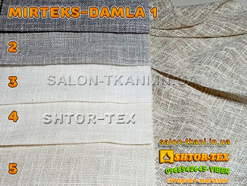 У нас Ви можете купити шторну тканину MIRTEKS DAMLA 1,2,3,4,5 гуртом та в роздріб від 1м за самою кращею ціною. У нас представлені MIRTEKS мирових брендів, в докладних каталогах та з якістними фото.Ми пропонуємо відмінну якість за ціною виробника.Працюємо по всій Україні: Київ, Дніпро, Запоріжжя, Харьків, Одеса, Миколаїв, Вінниця, Житомир, Івано-Франківськ, Кропівницький, Полтава, Суми, Тернопіль, Чернівці, Чернігів, Херсон, Львів, Рівне, Ужгород...