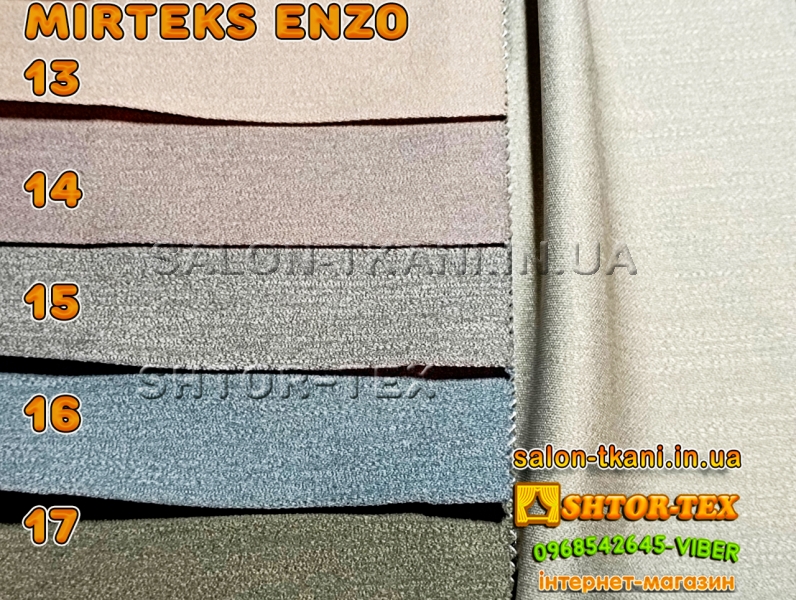 У нас Ви можете купити шторну тканину MIRTEKS ENZO 13,14,15,16,17 гуртом та в роздріб від 1м за самою кращею ціною. У нас представлені MIRTEKS мирових брендів, в докладних каталогах та з якістними фото.Ми пропонуємо відмінну якість за ціною виробника.Працюємо по всій Україні: Київ, Дніпро, Запоріжжя, Харьків, Одеса, Миколаїв, Вінниця, Житомир, Івано-Франківськ, Кропівницький, Полтава, Суми, Тернопіль, Чернівці, Чернігів, Херсон, Львів, Рівне, Ужгород...