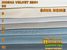 Тканина велюр SAVA HOME 2301 MOSHA VELVET 30,6,7,31,9,8,12 має дуже м'яку бархатисту фактуру. Чудова кольорова гама, багато пастельних тонів, багато відтінків сірої гами, а також яскраві яскраві кольори. Тканина чудово драпірується, складки виходять об'ємними, що струмують. Матеріал дуже простий у догляді, можна прати в машині та гладити.